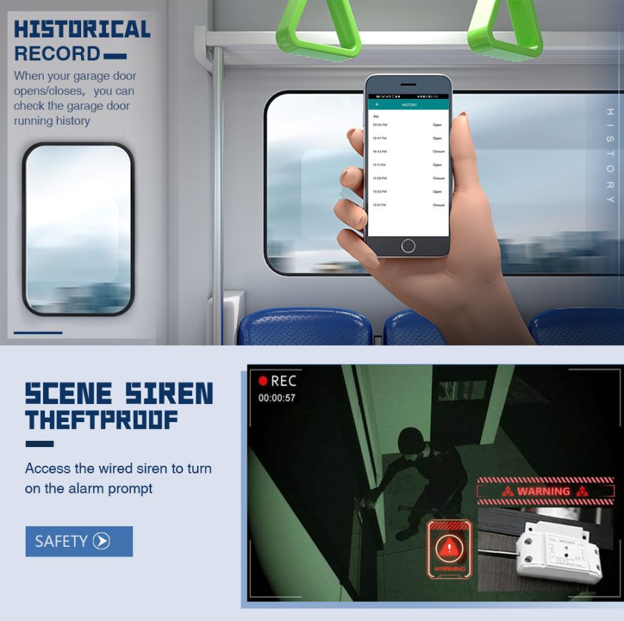 Preverite zgodovino delovanja garažnih vrat v aplikaciji Tuya/Smart Life. Modul zabeleži vsako spremembo stanja vrat. Aplikacija Tuya vam te statuse prikaže, kot: Npr.:08:00 AM Odprto, 12:00 Zaprto.