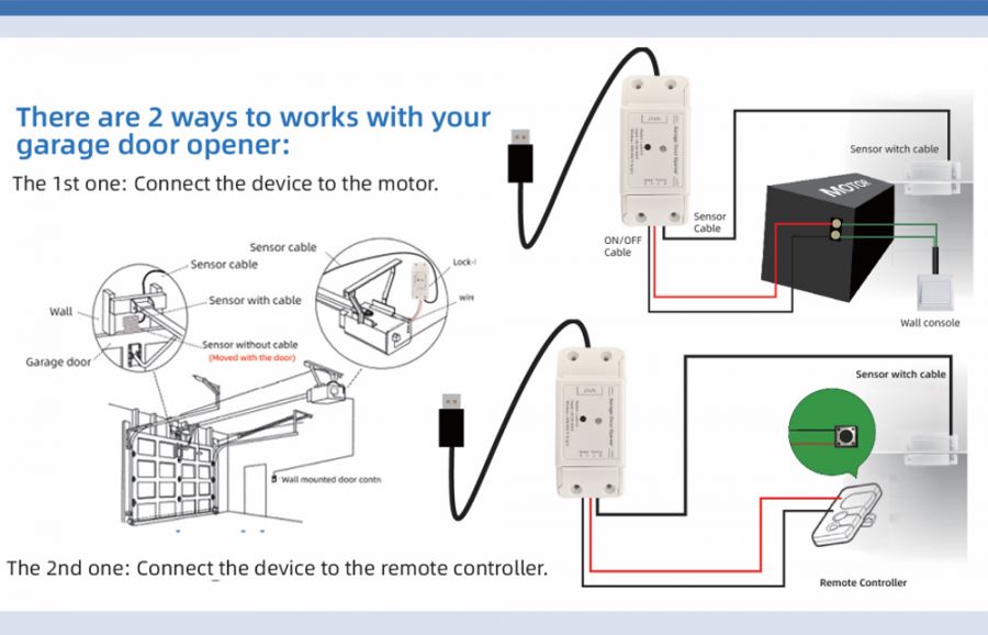 Modul preprosto zamenjajte ali namestite vzporedno z gumbom za upravljanje garažnih vrat. Modul prevzame nadzor nad garažnimi vrati tako, da preko aplikacije Tuya Smartlife, ki si jo brezplačno namestite na vaš pametni telefon, prejme signal za zapiranje ali odpiranje garažnih vrat.